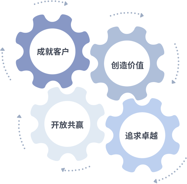 成就客户是一切决策的出发点,创造价值是衡量所有工作的标准,追求卓越是981博天娱乐做事做人的态度,开放共赢是981博天娱乐的格局也是最终的结果。价值观的齿轮环环相扣,推动着组织里的每个人不断向前。